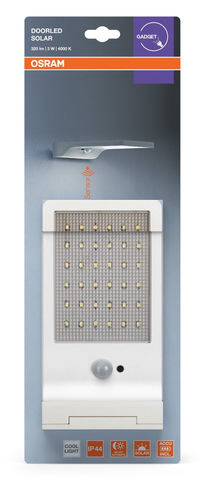 Osram - LED solcellsdriven vägglampa med sensor DOORLED LED/3W/3,3V IP44 | Alasans