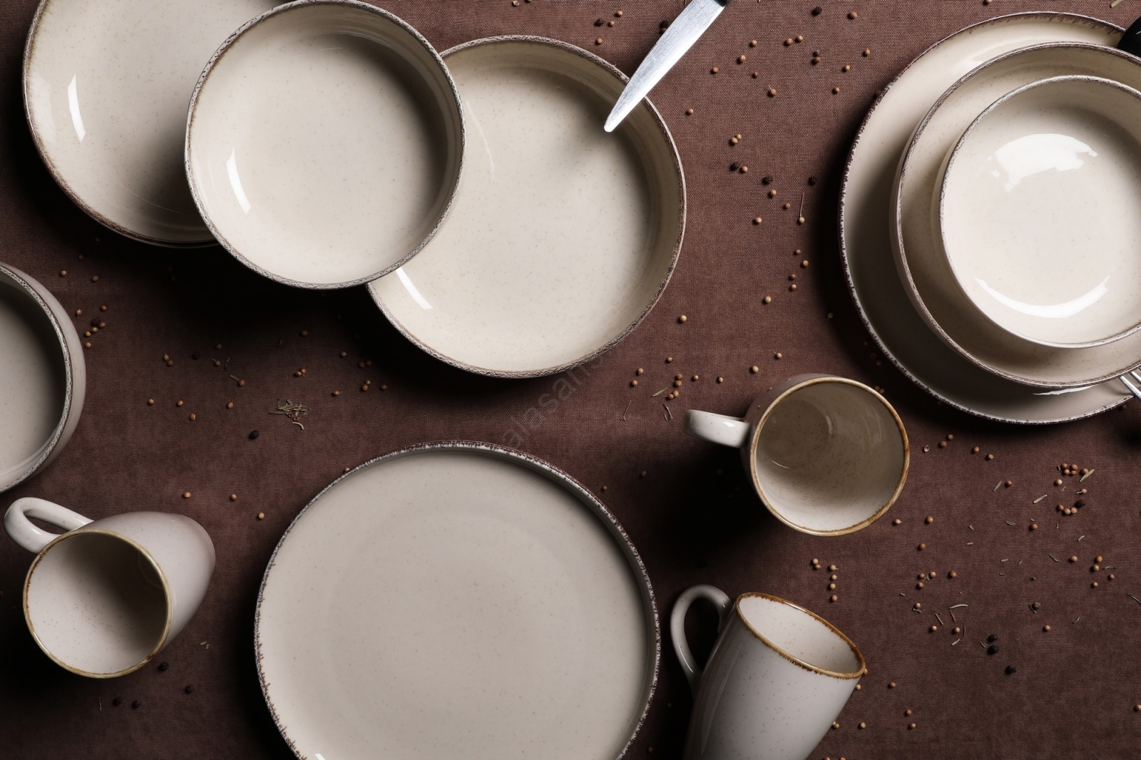 16-delars middagsservis i beige porslin