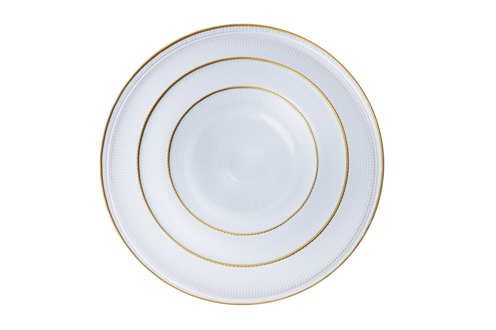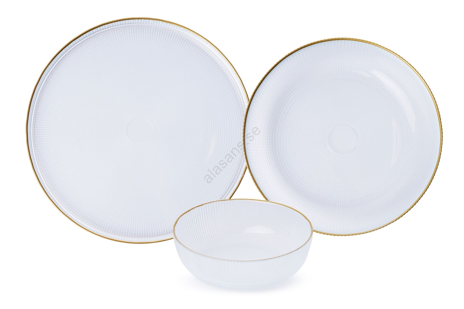 18-delars matservis i klart glas med gulddetaljer | Alasans