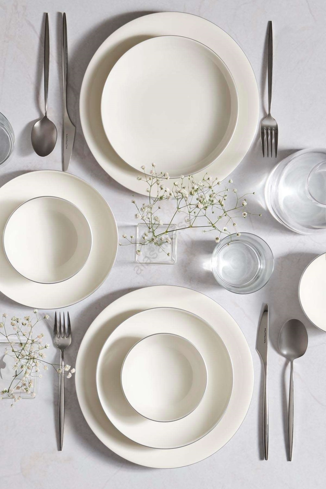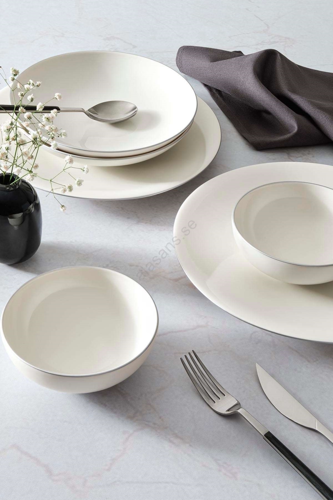 18-delars matservis, vit/silver, porslin | Alasans