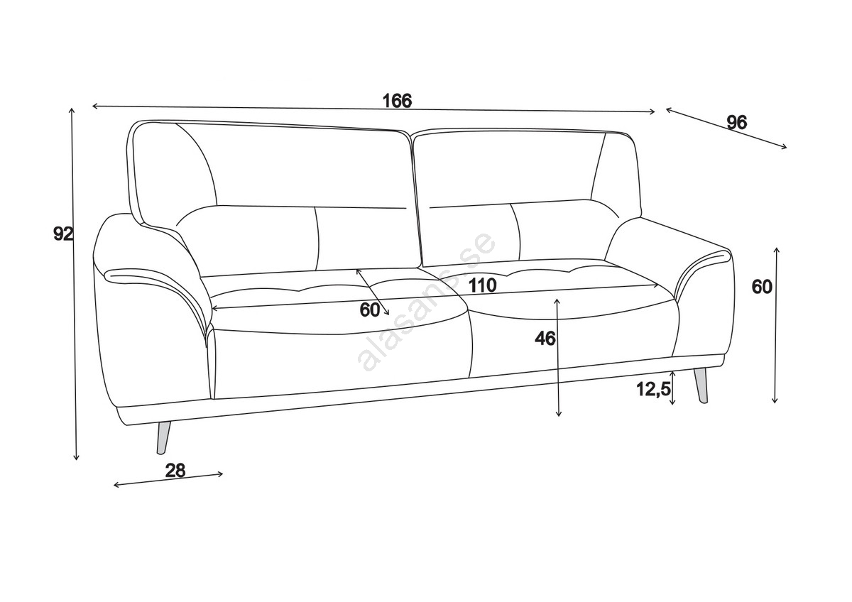 • Tvåsitssoffan kännetecknas av en bekväm ryggstoppning som ger utmärkt stöd när du sitter.