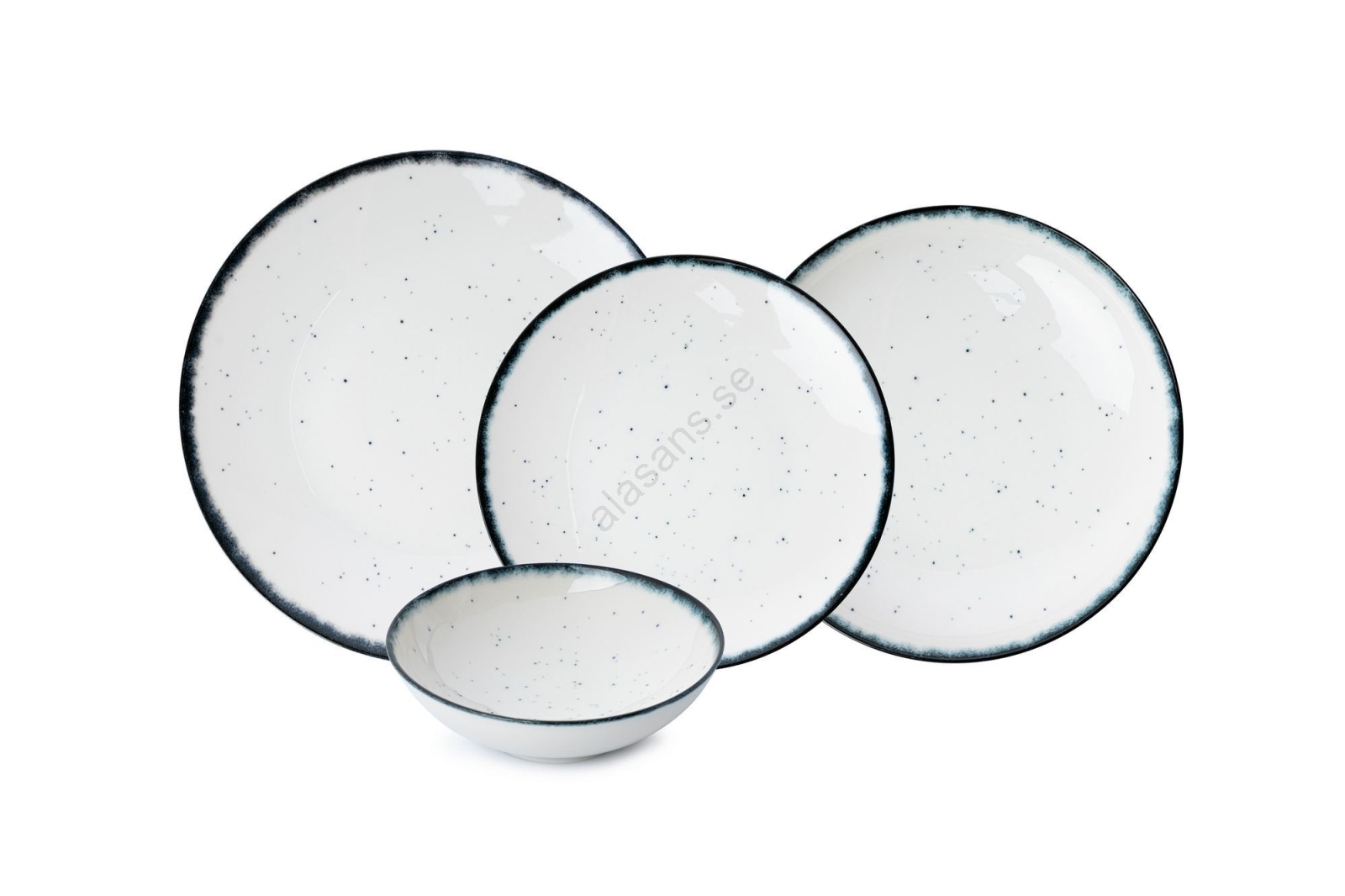 24-delars middagsservis i porslin, vit/svart | Alasans