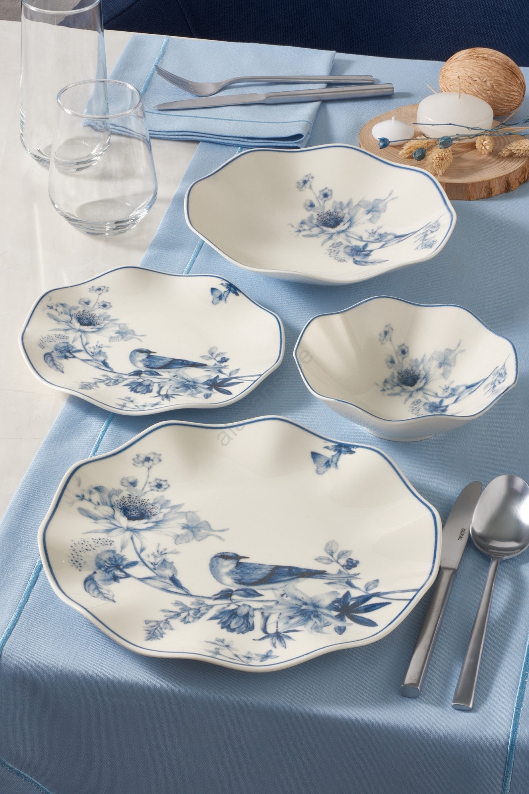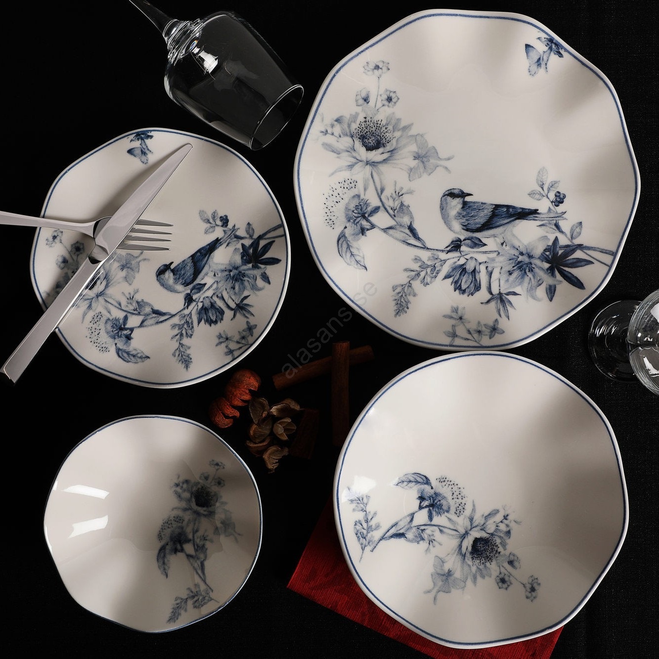 24-delars porslinsservis, vit/blå | Alasans
