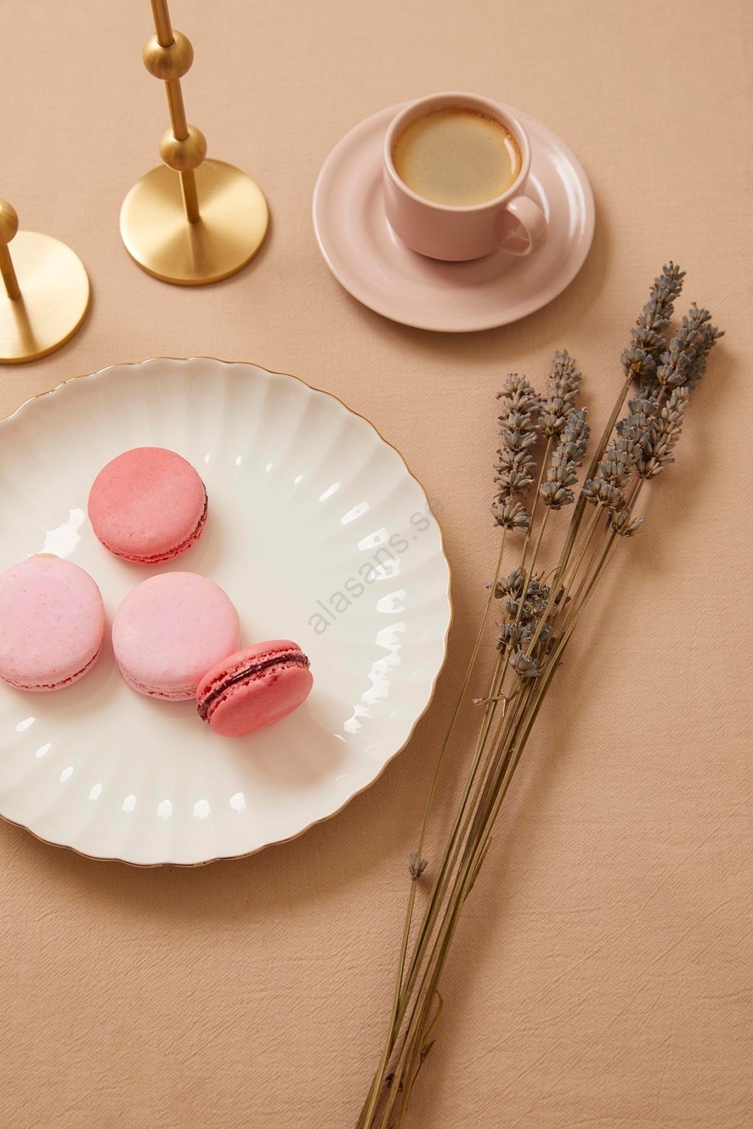 27-delars middagsservis i vitt porslin med gulddetaljer | Alasans