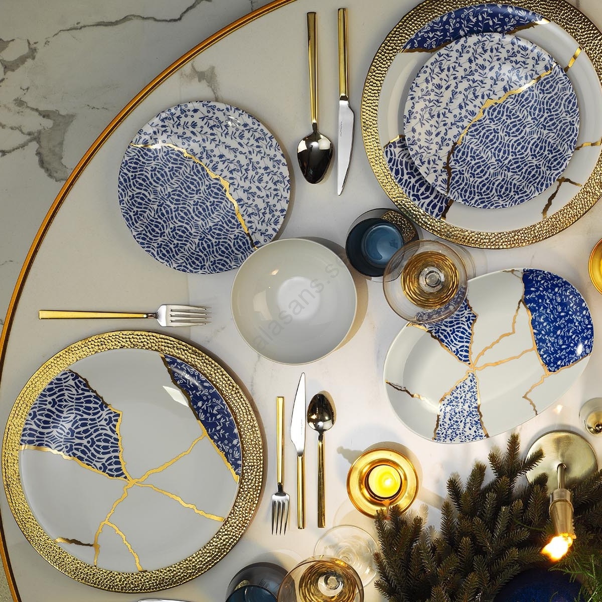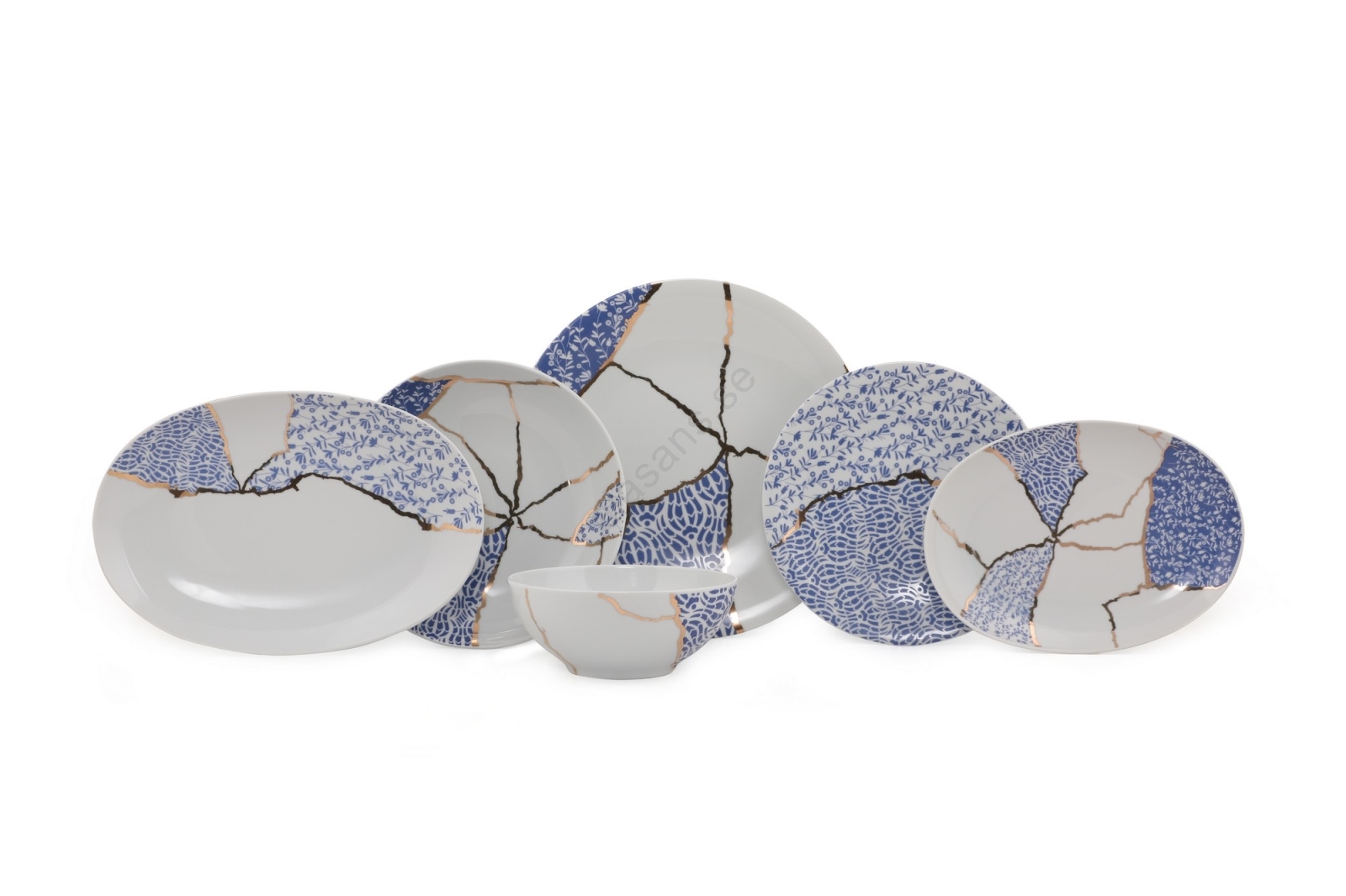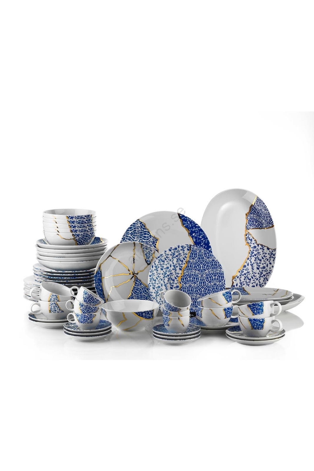 28-delars servis i porslin – vit/guld/blå | Alasans