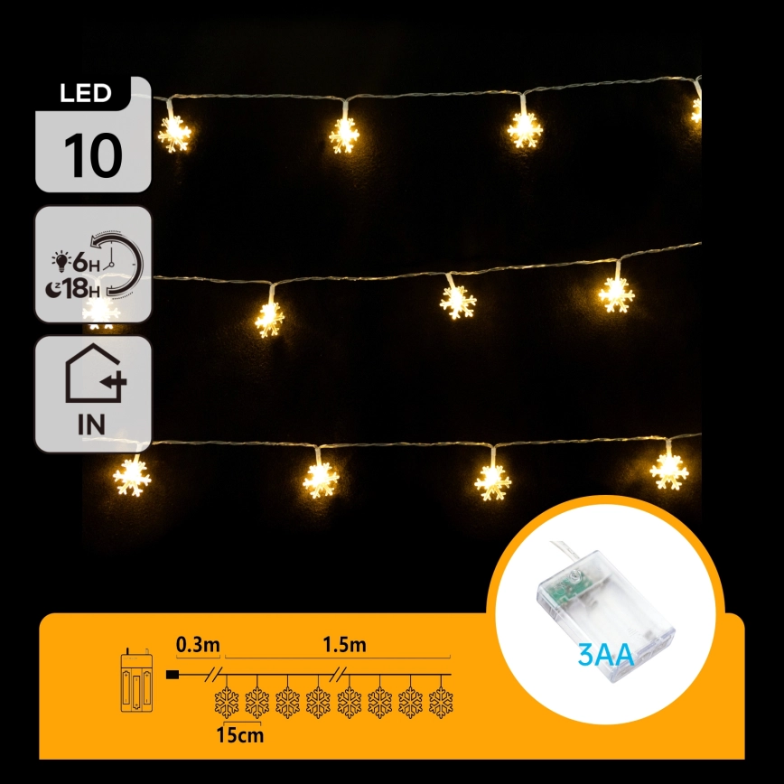Aigostar - LED-ljusslinga för jul 10xLED/3xAA 1,5m varmvit med snöflingor | Alasans