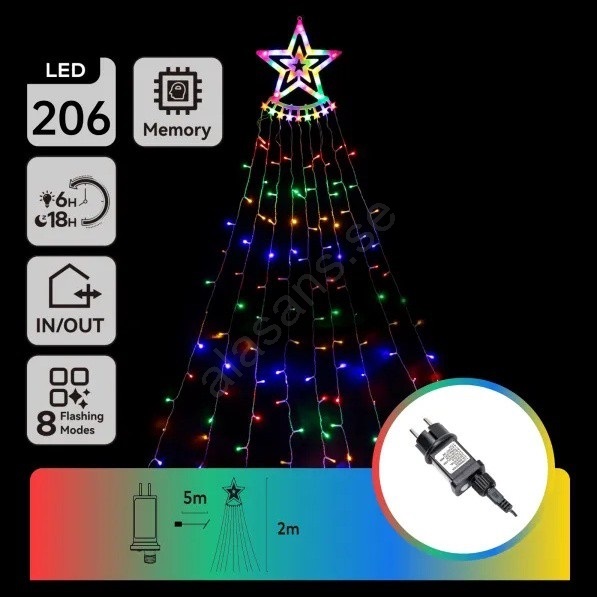 Aigostar - LED juldekoration för utomhusbruk, 206 LED, 2 m, IP44, flerfärgad