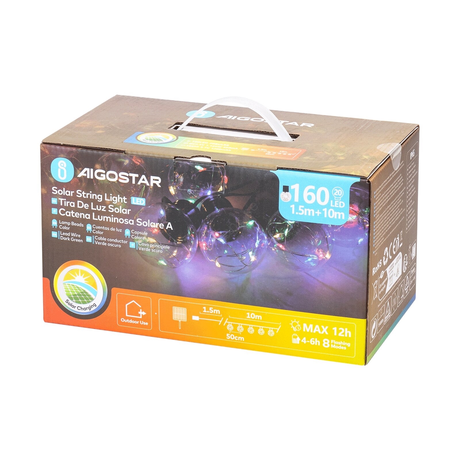 Aigostar LED solcellsljusslinga 20 LED, 8 funktioner, 11,5m, IP65, multicolor | Alasans