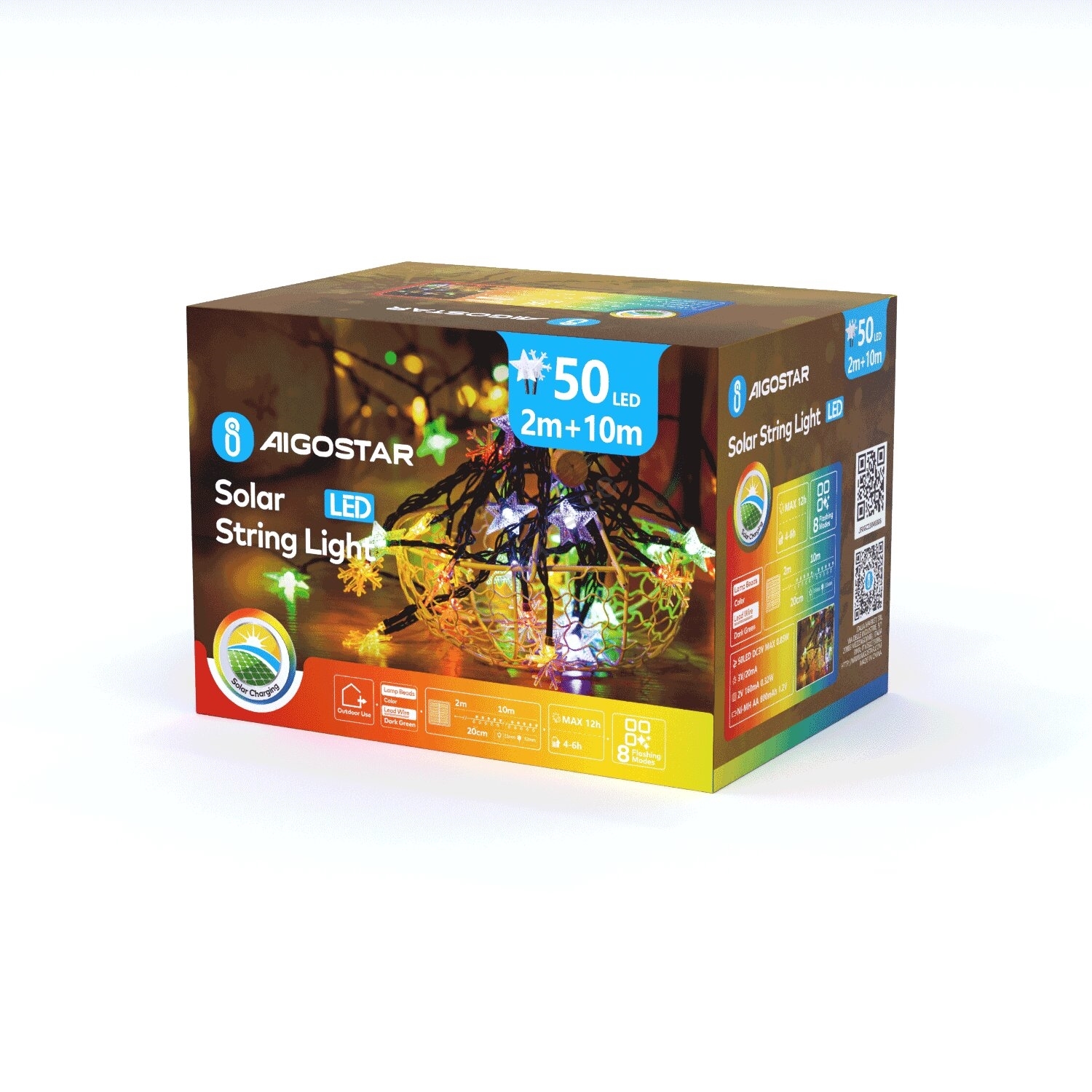 Aigostar LED solcellsljusslinga 50 LED, 8 lägen, 12m, IP65, multicolor | Alasans