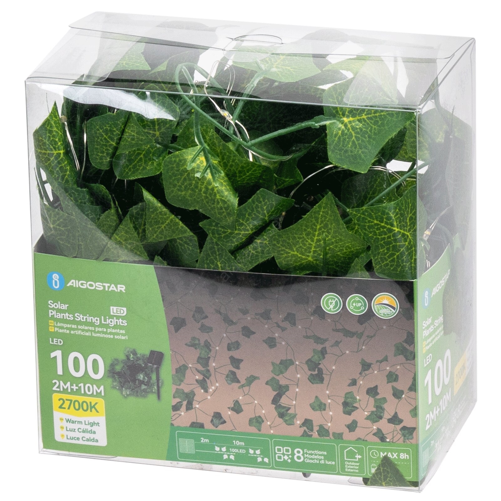 Aigostar LED solcellsljusslinga 100 LED/12m IP65 varmvit ivy | Alasans