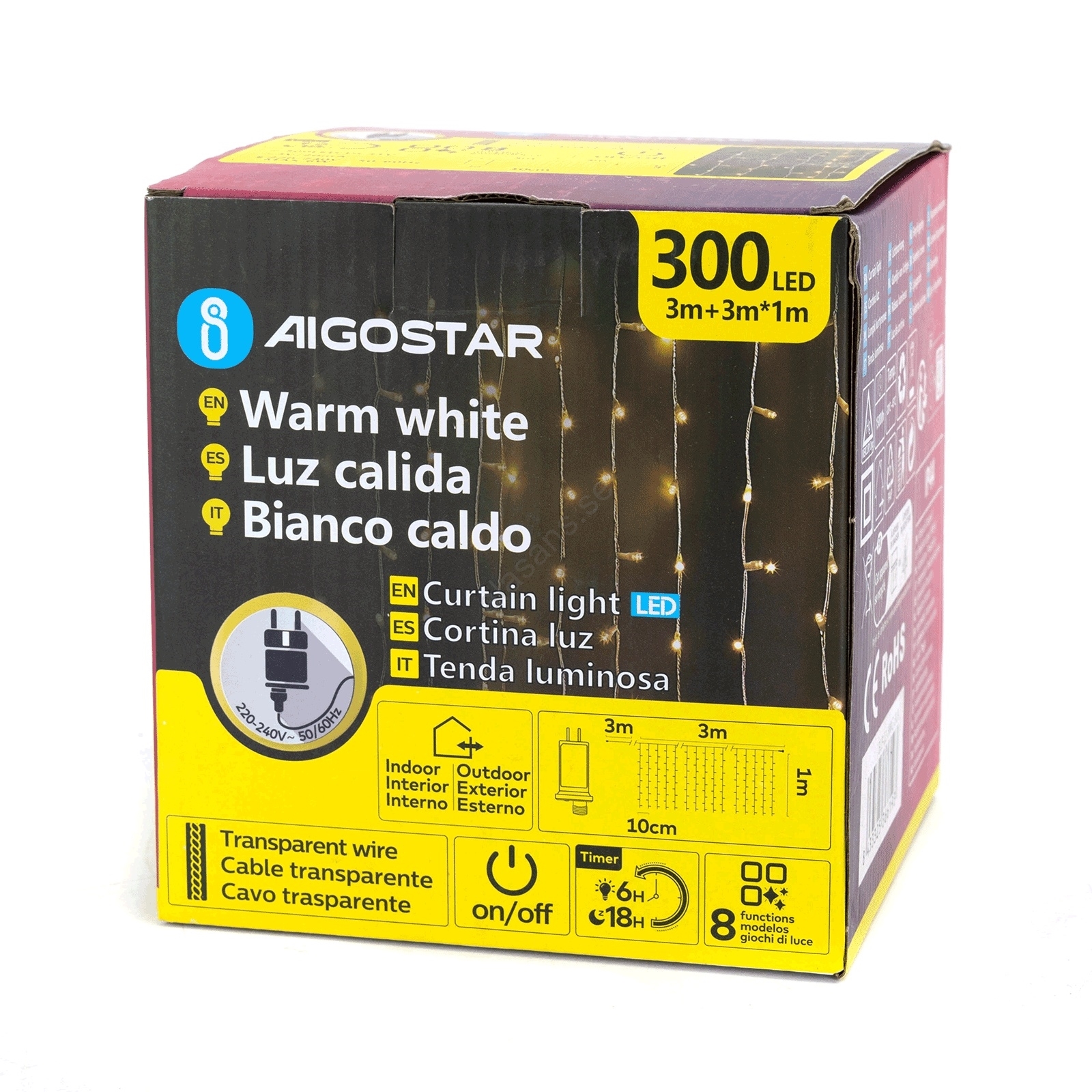 Aigostar - LED utomhus julslinga 300 LED/6W/230V/8 funktioner 3x1m IP44 varmvit + fjärrkontroll | Al