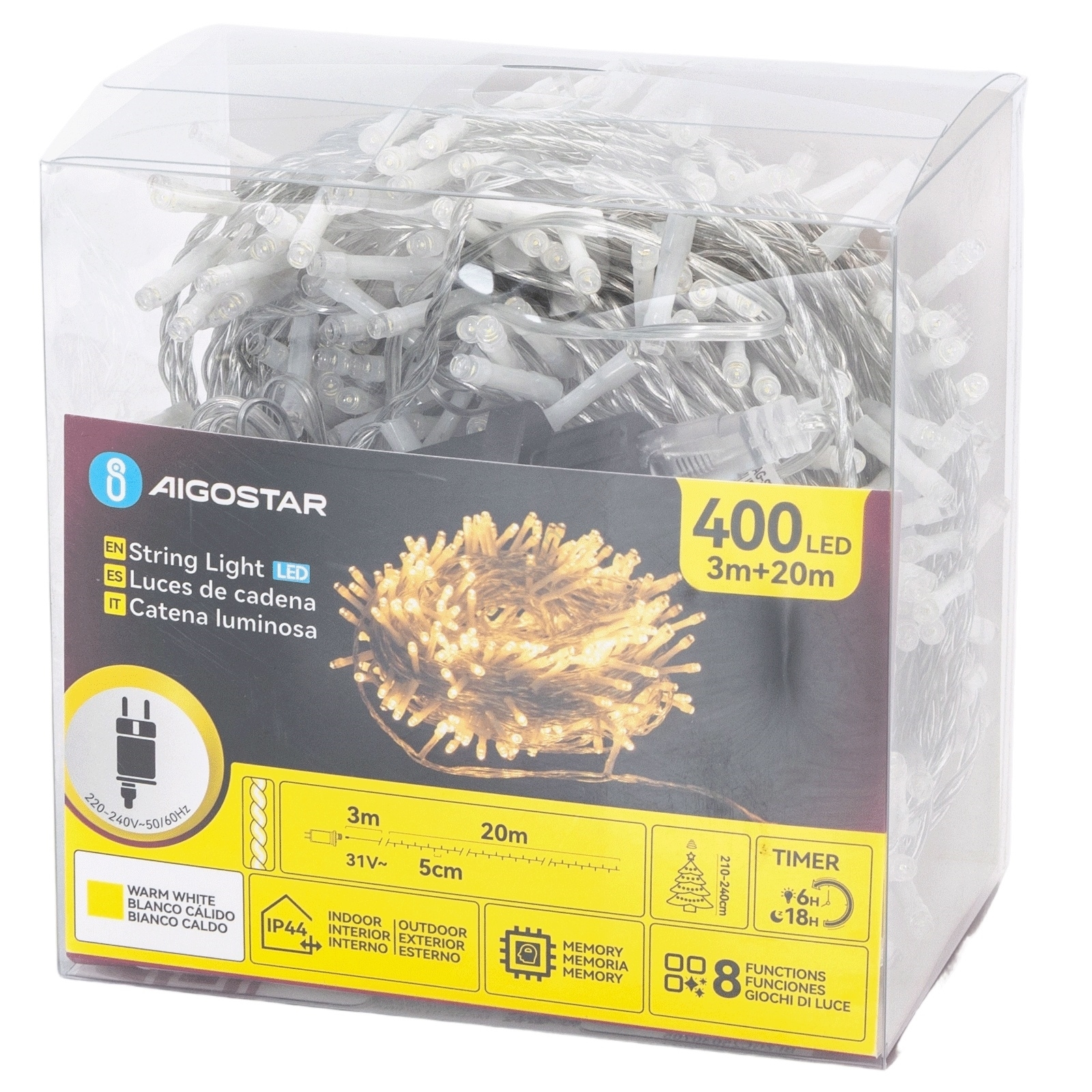 • Aigostar - LED julkedja för utomhusbruk 400xLED/8 funktioner 23m IP44 varm vit