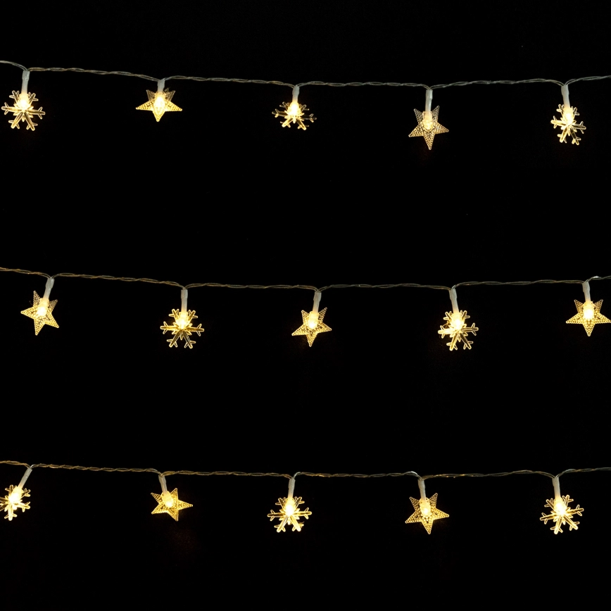 Aigostar - LED utomhus julslinga, 50 LED, 8 funktioner, 3xAA, 5 m, IP44, varmvit, stjärnformade lampor