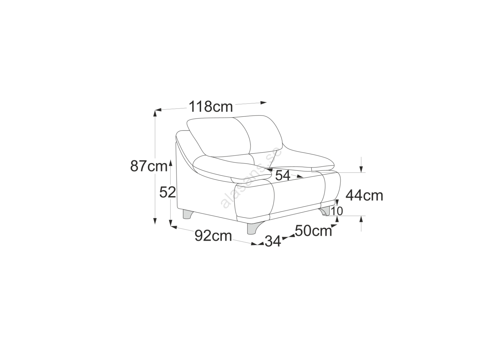 • Med en höjd på 86 cm, sittdjup på 43 cm och djup på 54 cm erbjuder den ergonomiskt och avslappnat sittande.
