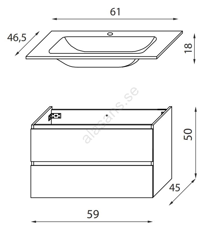 • Erbjuder generöst förvaringsutrymme för badrumsartiklar samt avsett utrymme för rör och vattenlås.