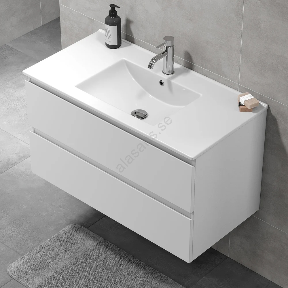 Badrumsskåp med tvättställ HENRY, 91 cm, vit | Alasans