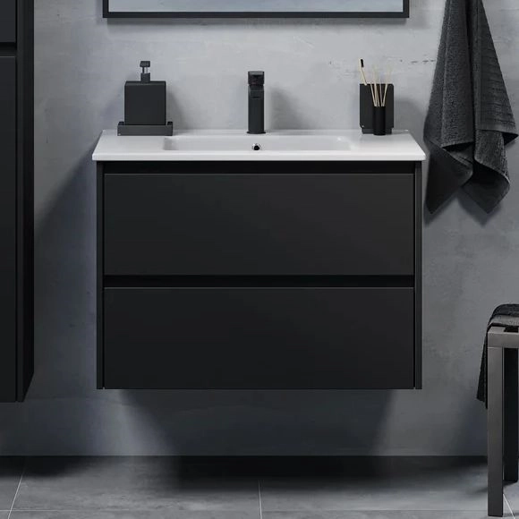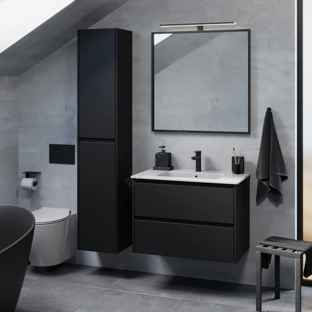 Badrumsskåp med tvättställ LYKE 80 cm svart | Alasans