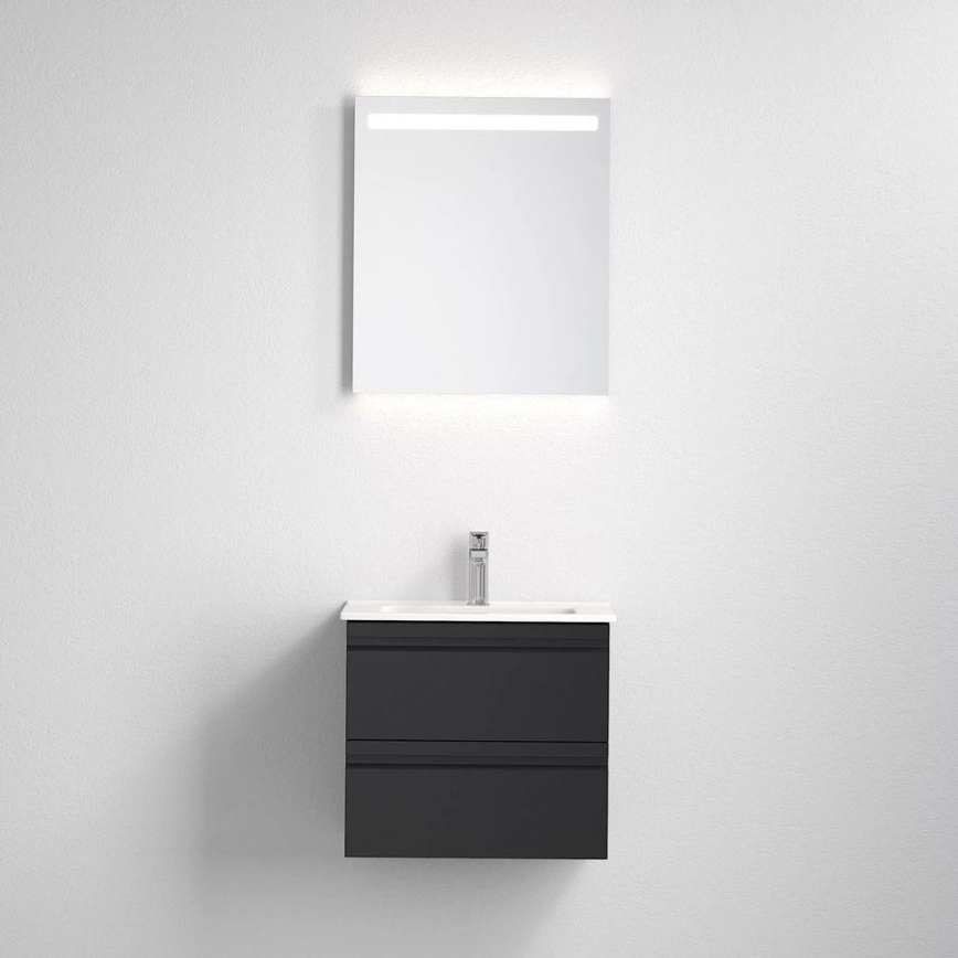 Badrumskommod med tvättställ VEDO + LED-spegel LED/10W/230V IP44 svart | Alasans