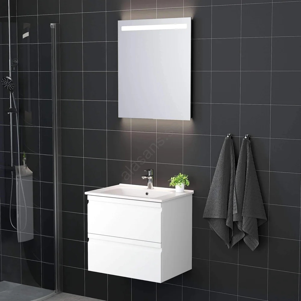 Badrumsskåp med tvättställ VEDO + LED-spegel LED/10W/230V IP44 vit | Alasans