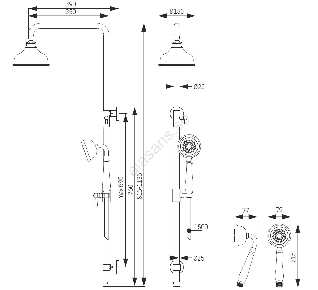 • Både duschhuvud och handdusch är utrustade med munstycken som motverkar kalkavlagringar.