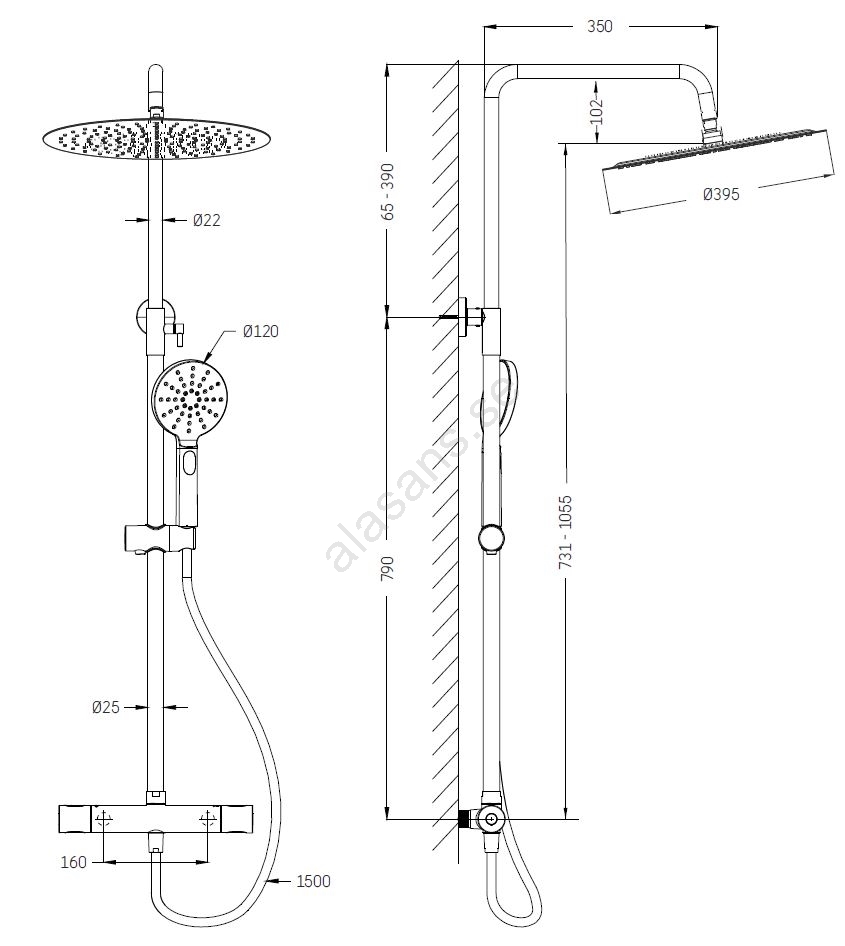 • Setet består av en termostatblandare i massiv mässing.