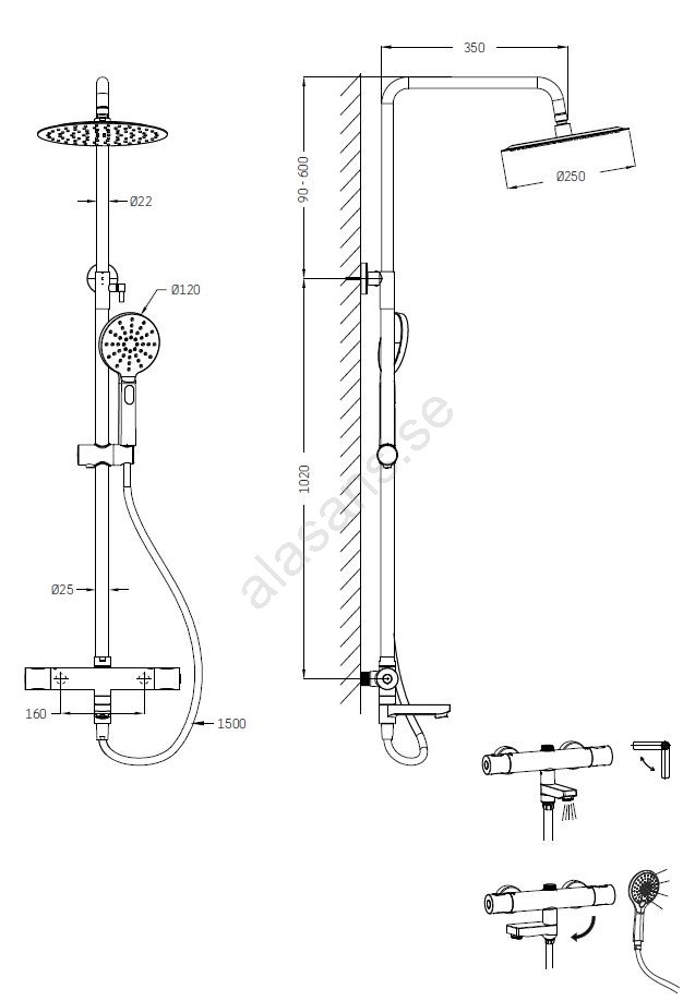 BATH DELUXE 31-160-11-60-00 - Duschutrustning med termostat DRAGOR krom | Alasans