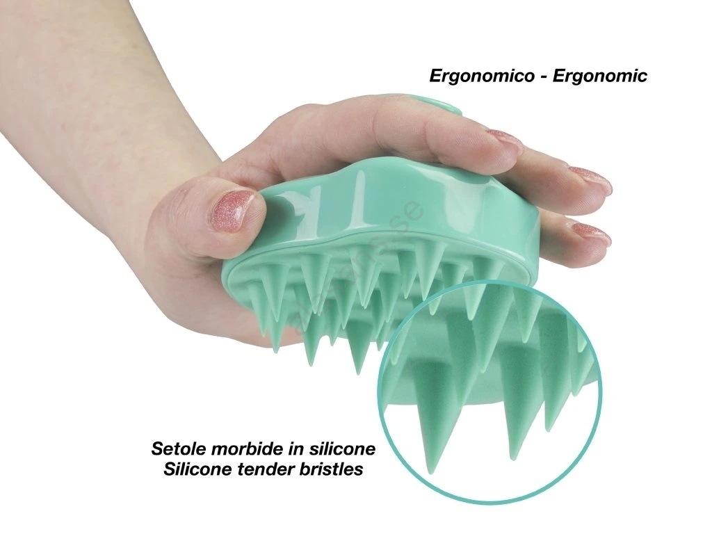 • Praktisk handhållen hårbottenmassageborste är avsedd för användning i både vått och torrt.