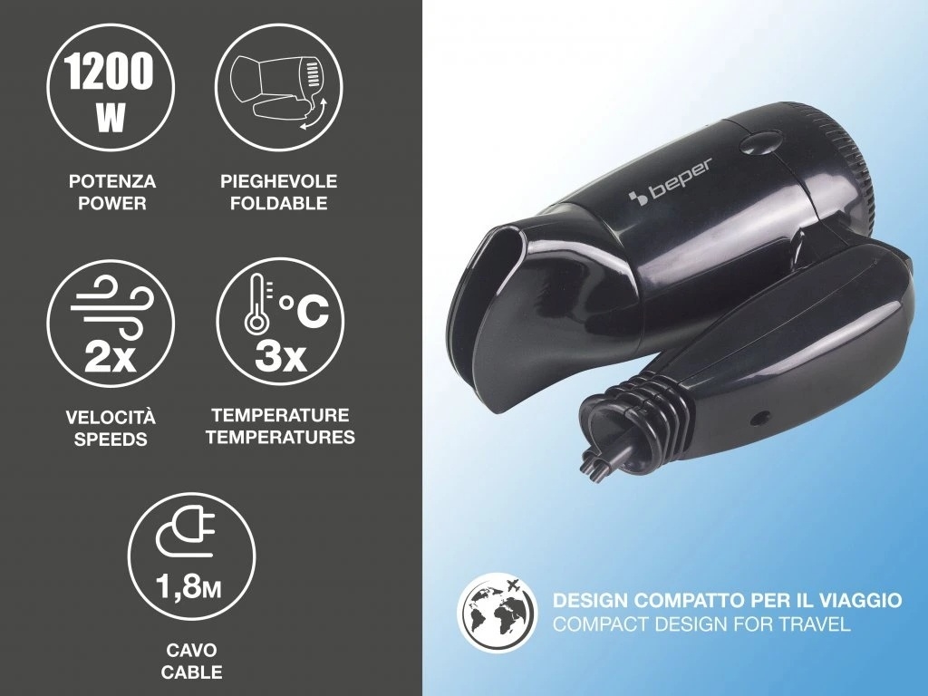 Beper - Resehårtork 1200W/230V | Alasans