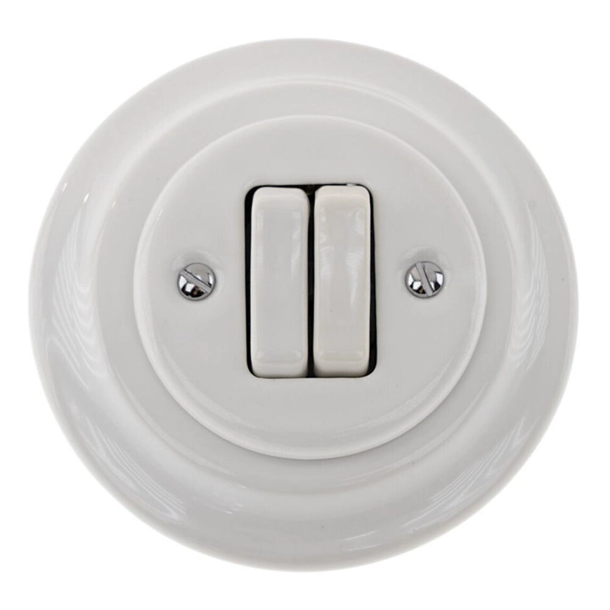 Bohemia-Design - Retro dubbelströmbrytare i porslin med ram nr. 5, vit