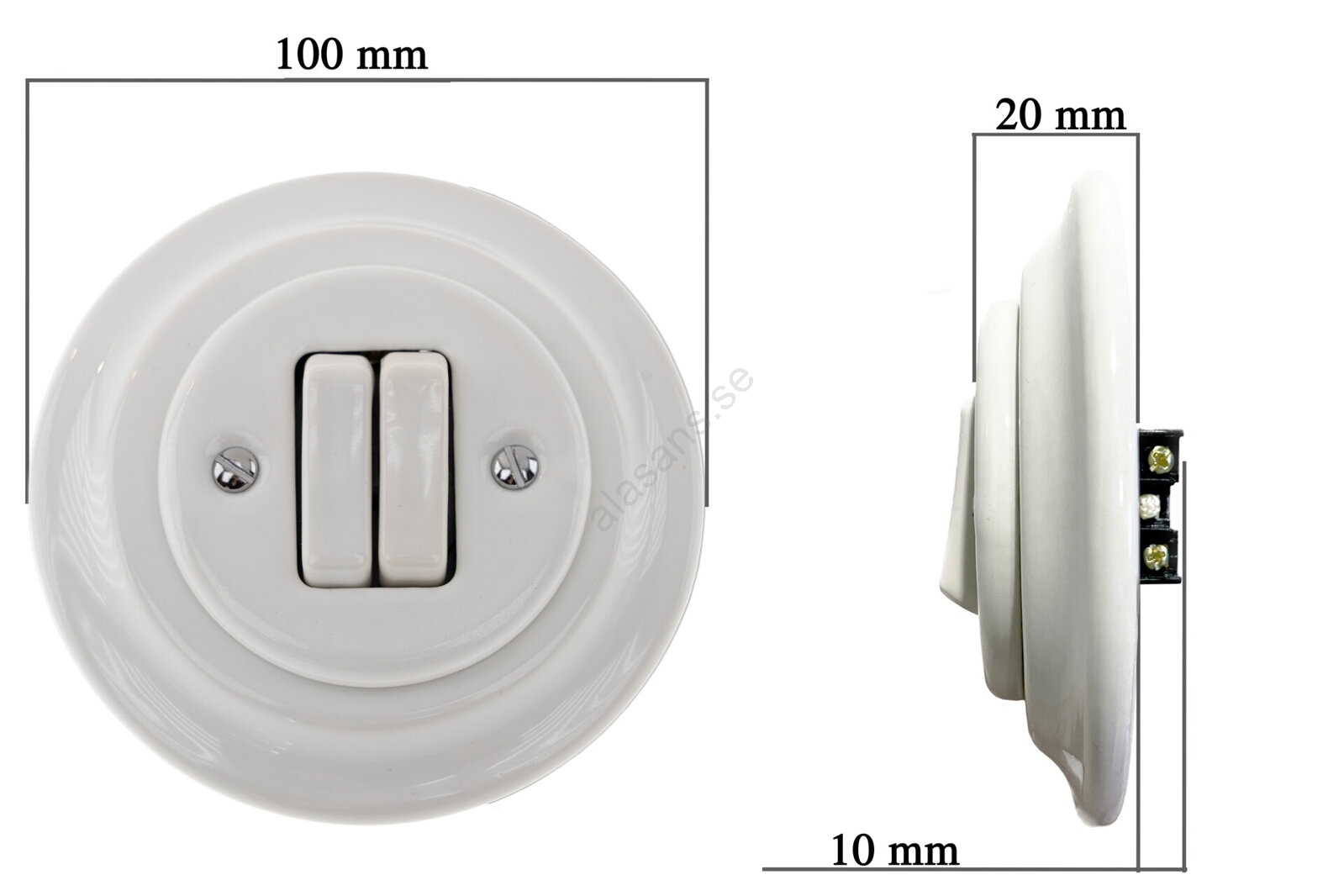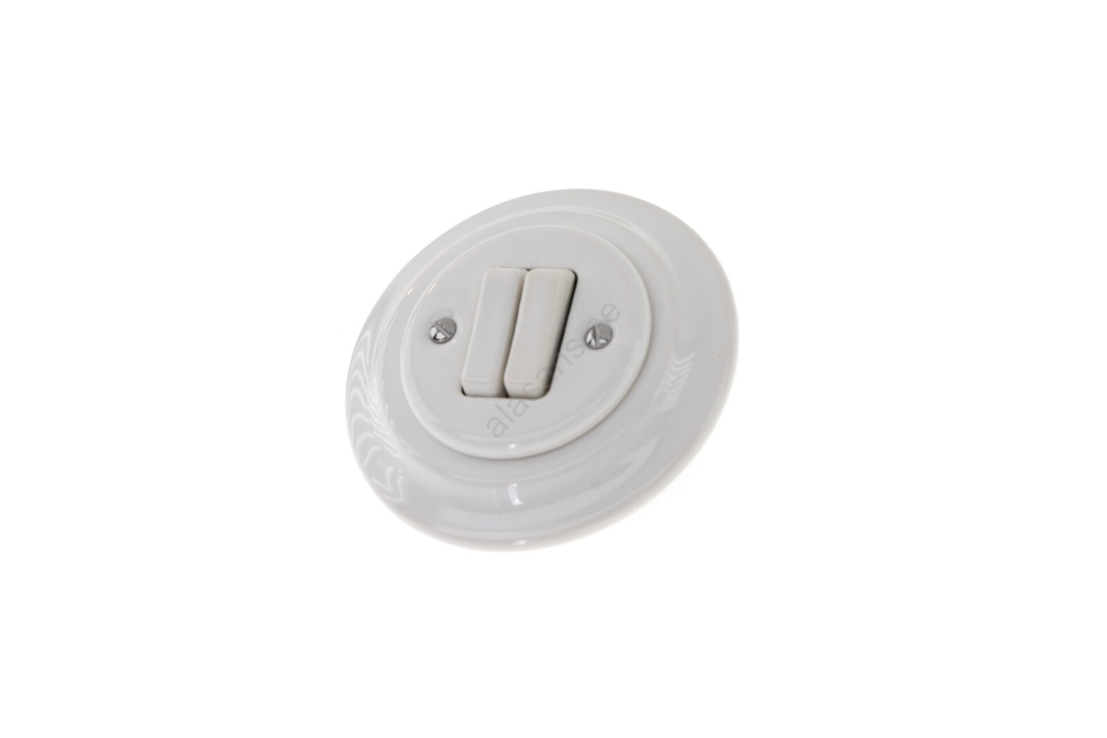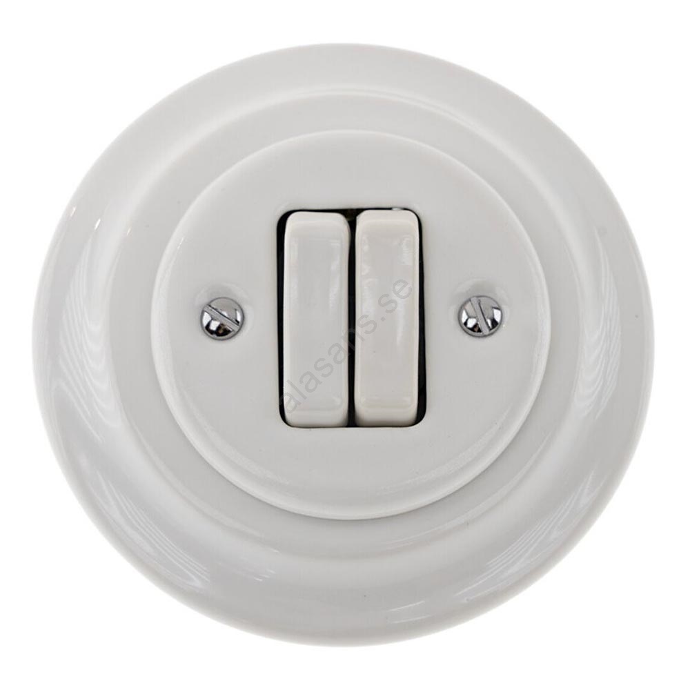 Bohemia-Design - Retro dubbelströmbrytare i porslin med ram nr. 5, vit | Alasans