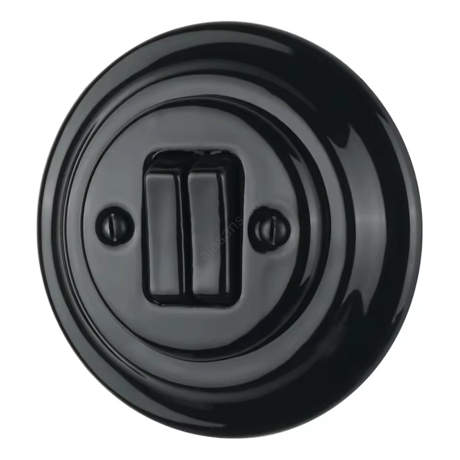 Bohemia-Design - Retro dubbelströmbrytare i porslin med ram nr 5, svart | Alasans