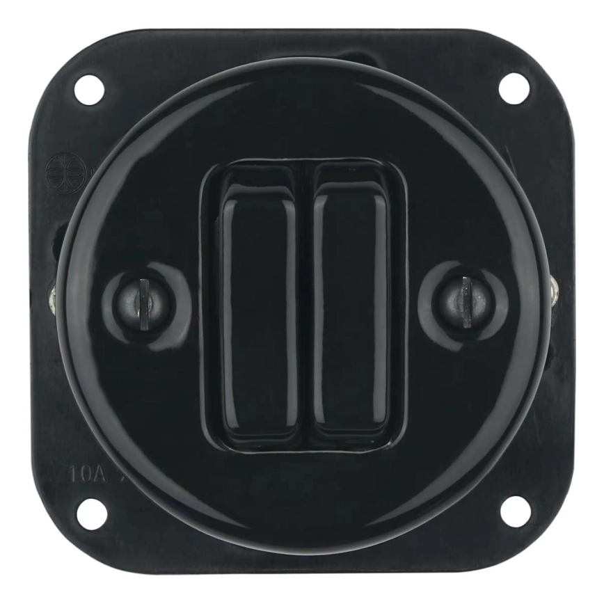 Bohemia-Design - Retro dubbelströmbrytare i porslin utan ram, modell nr. 5, svart