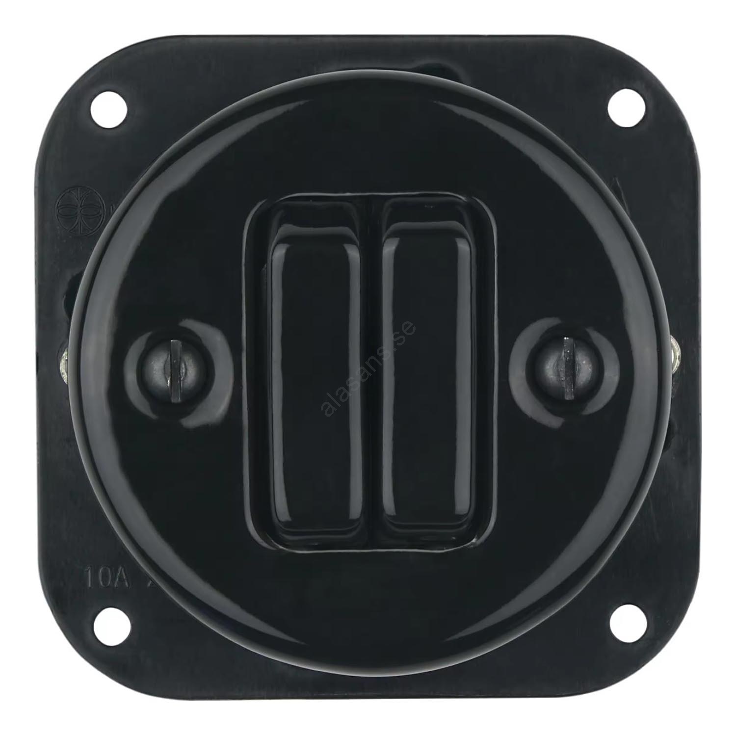Bohemia-Design - Retro dubbelströmbrytare i porslin utan ram, modell nr. 5, svart | Alasans