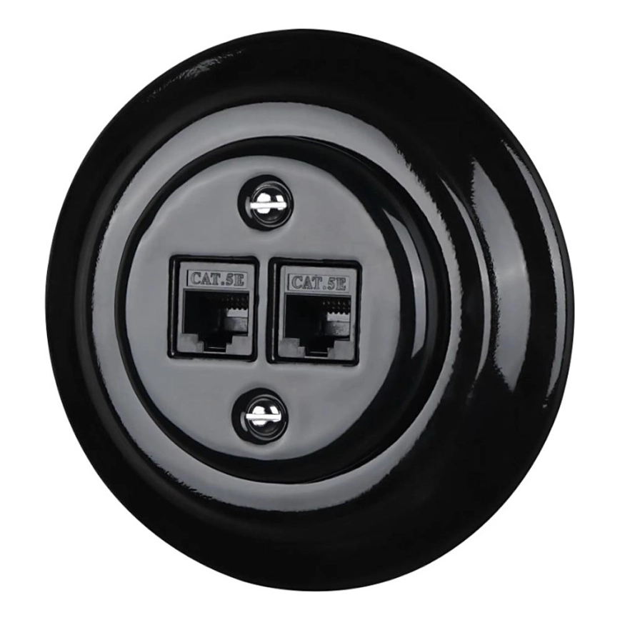 Bohemia-Design - Retro nätverksuttag i porslin med ram, 2x CAT5e, svart