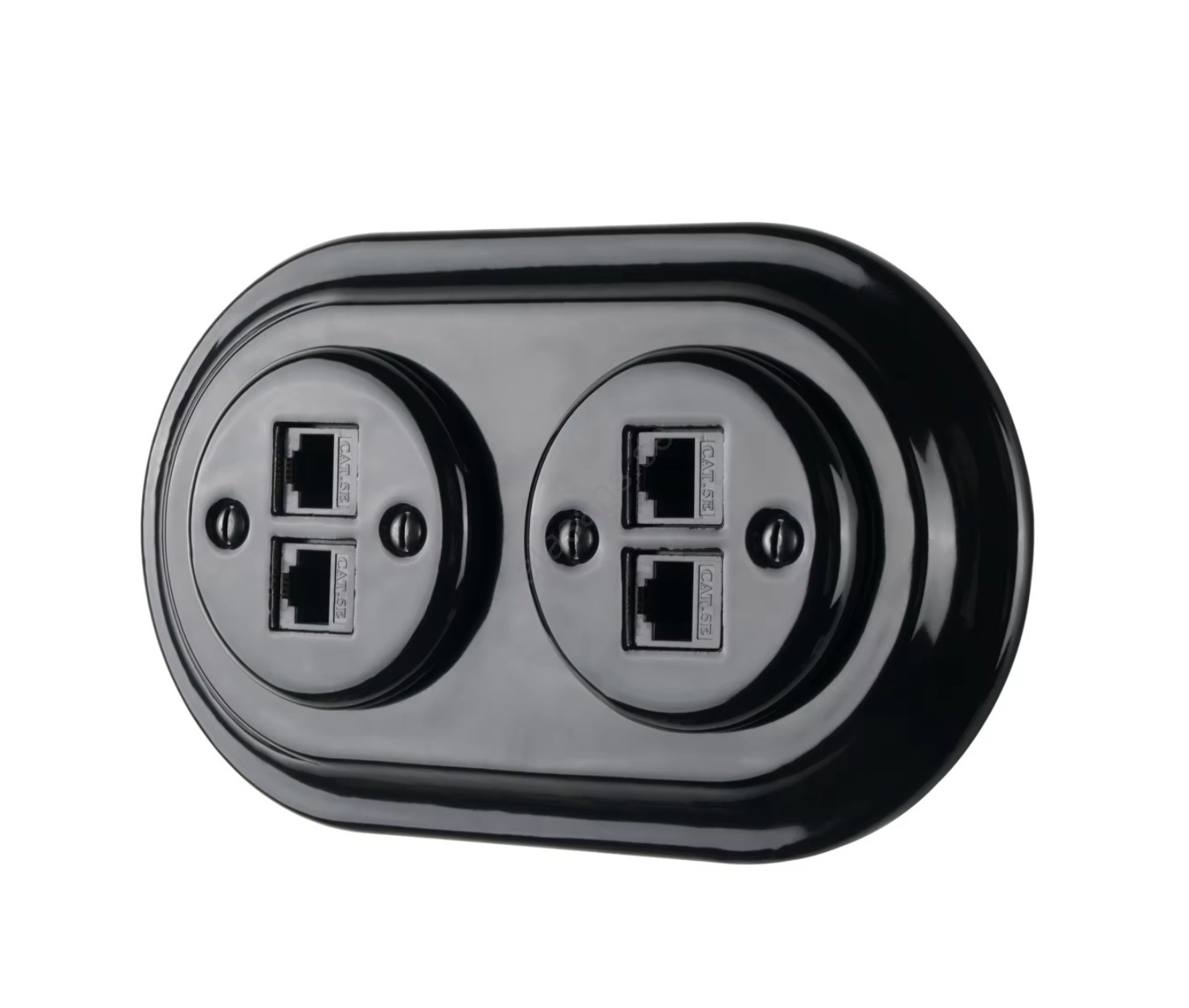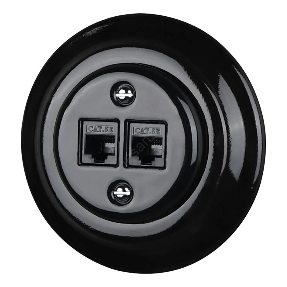 Bohemia-Design - Retro nätverksuttag i porslin med ram, 2x CAT5e, svart | Alasans