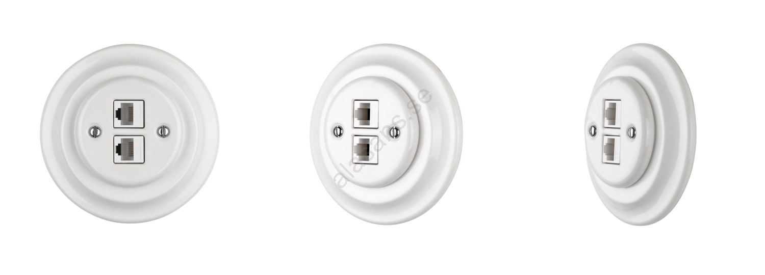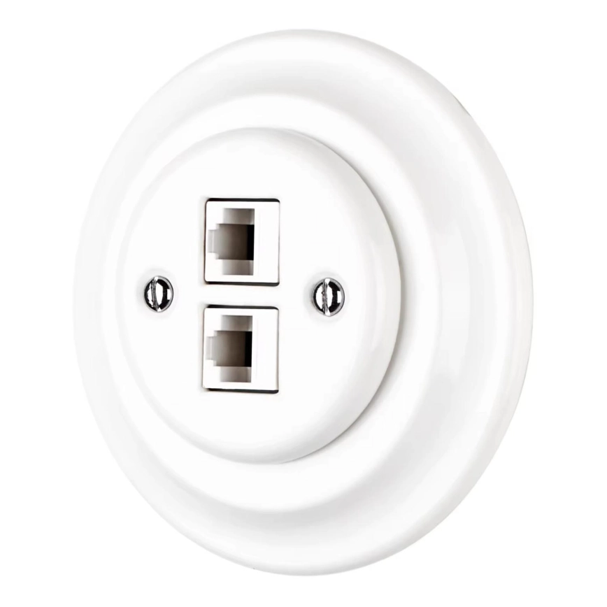 Bohemia-Design - Retro Ethernet-uttag i porslin med ram, 2x CAT.5E, vit | Alasans
