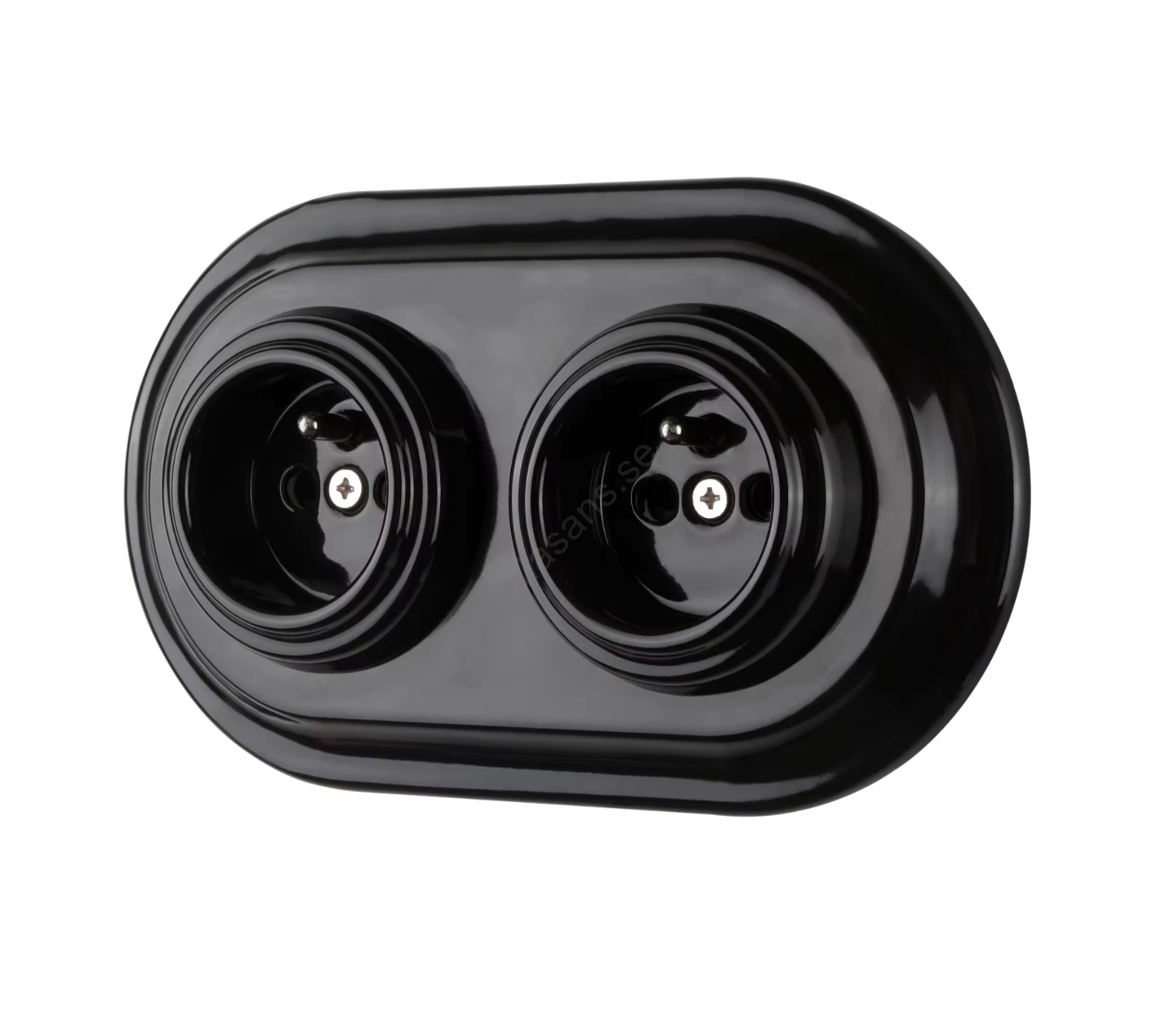Bohemia-Design - Porslinsuttag i retrostil för hemmabruk, utan ram, 250V/16A, svart | Alasans