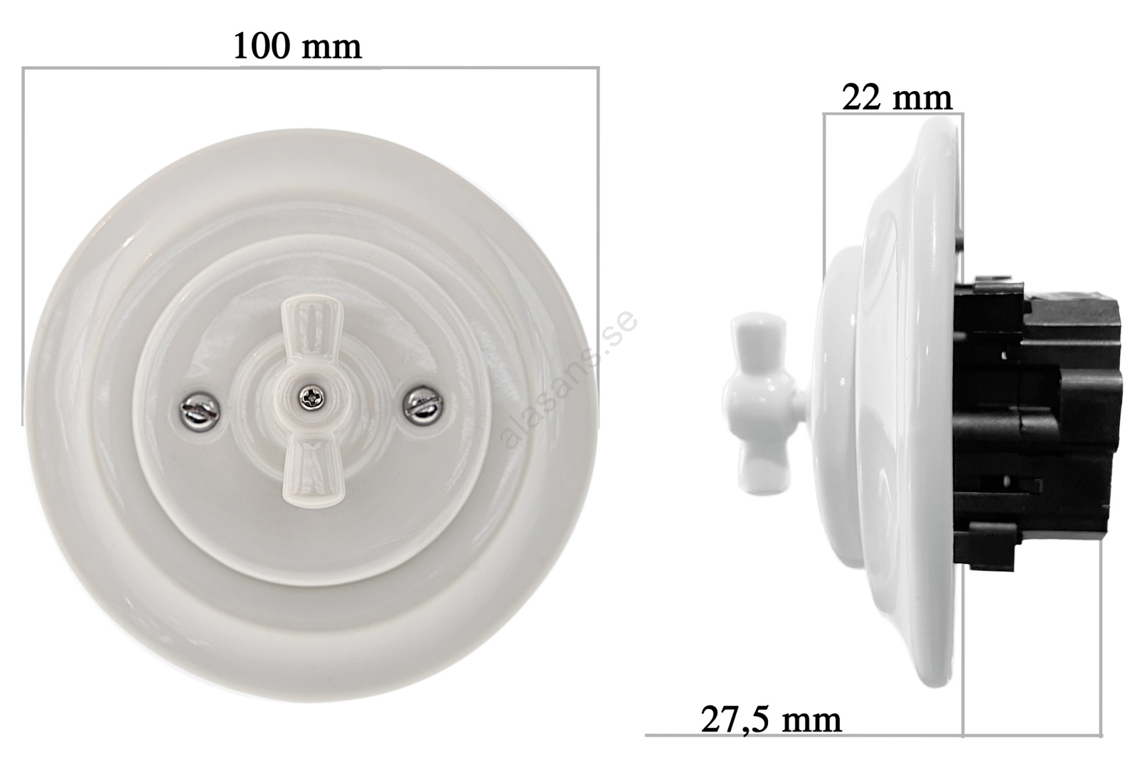 Bohemia-Design - Retro porslinsvridströmbrytare med ram nr. 7 vit | Alasans