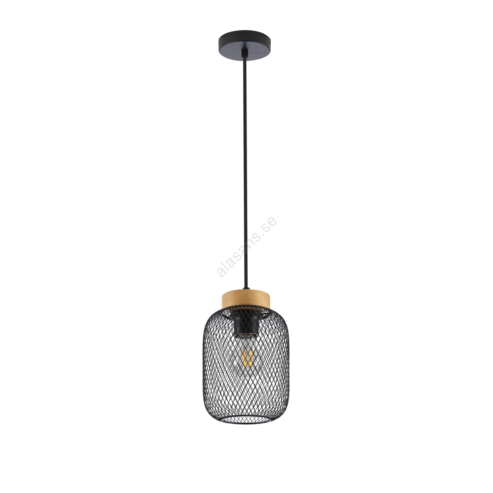 Brilagi - Hänglampa på sladd BASKLITE 1xE27/15W/230V gummiträ/svart | Alasans