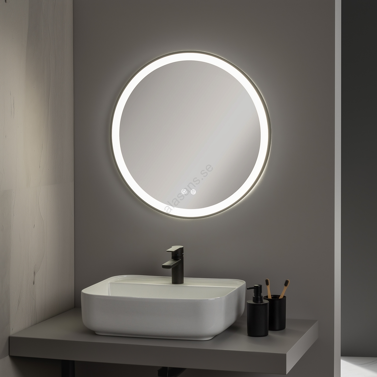 • Badrumsspegel med svart ram.