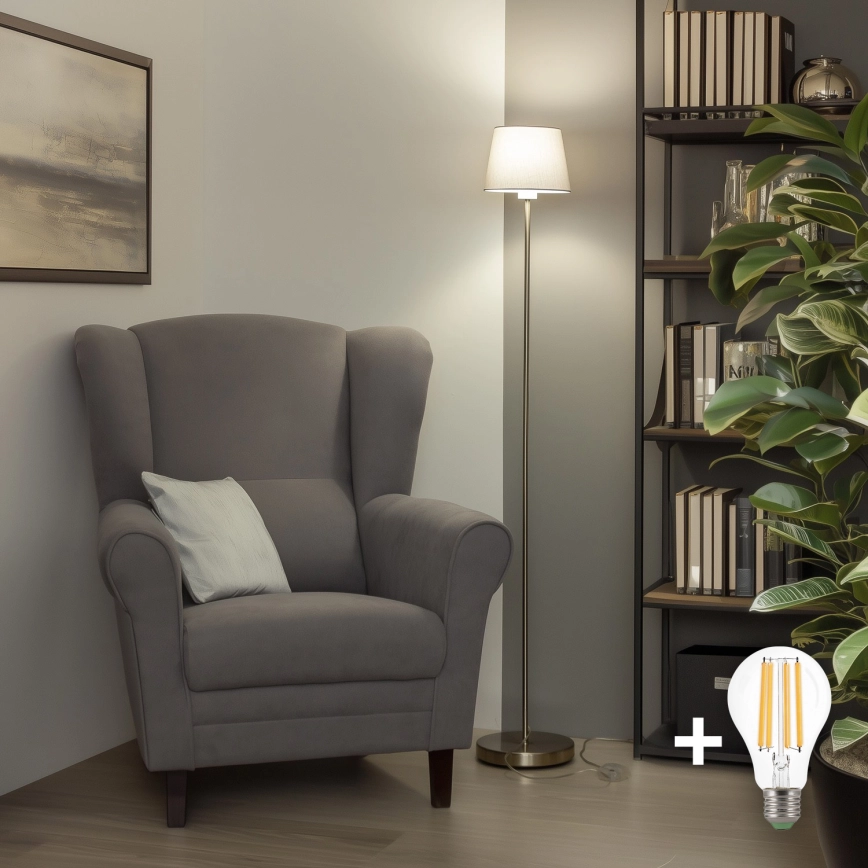 • Brilagi - LED-golvlampa CERIA 1xE27/40W/230V Ø 20,5 cm vit/mattkrom