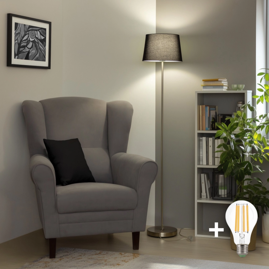 Brilagi - LED-golvlampa CERIA 1xE27/40W/230V Ø 30 cm svart/matt krom