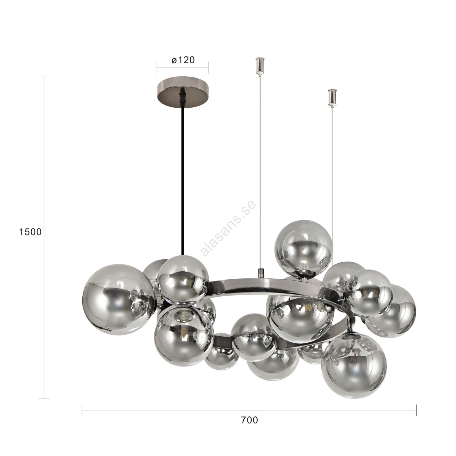 Brilagi - LED ljuskrona med textilsladd MILLA 15xG9/3W/230V skinande krom/rökig | Alasans