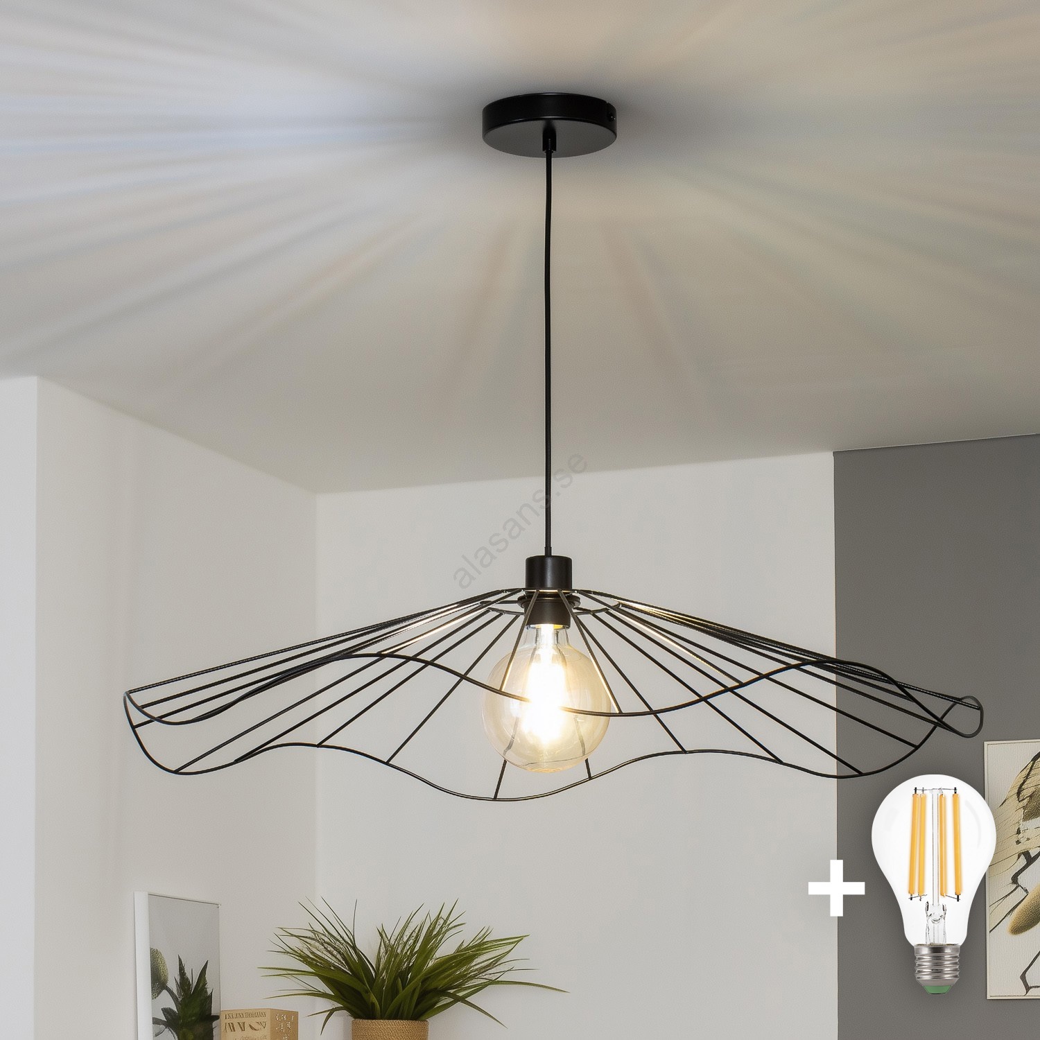 Brilagi - LED-pendel med vajer CERIA WIRE 1xE27/40W/230V Ø 80 cm svart kännetecknar snygg och funktionell design. En glödlampa med E27 lock är lämplig för lampan. Här kan du köpa andra glödlampor till förmånliga priser. Du kommer att få ett intressant tillägg till ditt hem.