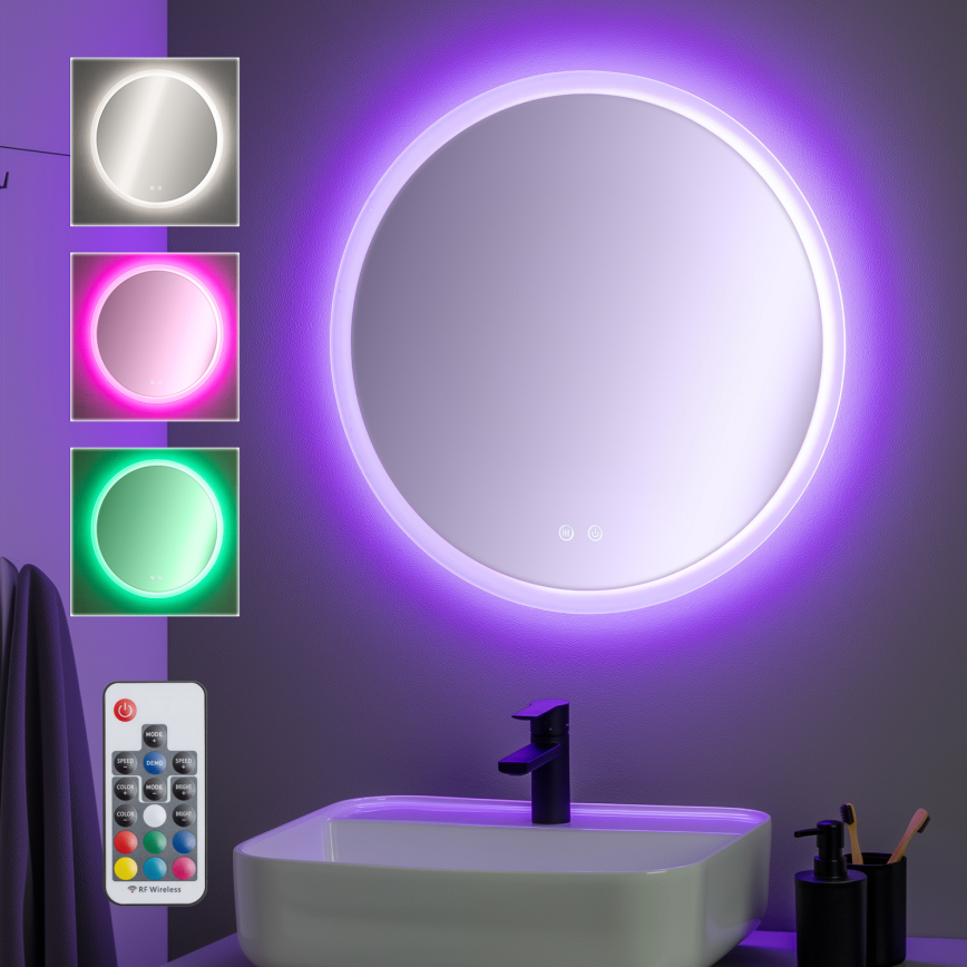 • Samtidigt kan RGB-bakgrundsbelysningen på spegeln ställas in med fjärrkontrollen.