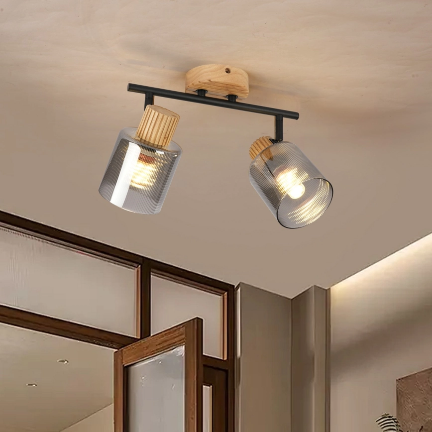 • Brilagi - Takspot HYGGE 2xE14/15W/230V gummiträ/rökfärgad