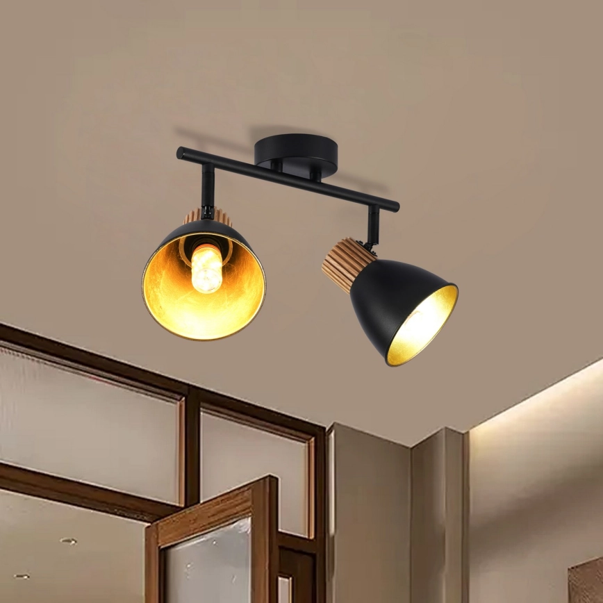 Brilagi - Spotlampa ODENSE 2xE14/10W/230V gummiträ/svart