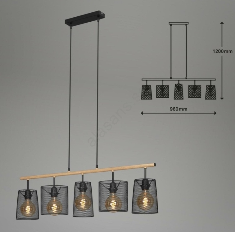 Brilo 4078-054 - Hänglampa med kabel WOOD & STYLE 5xE27/60W/230V | Alasans
