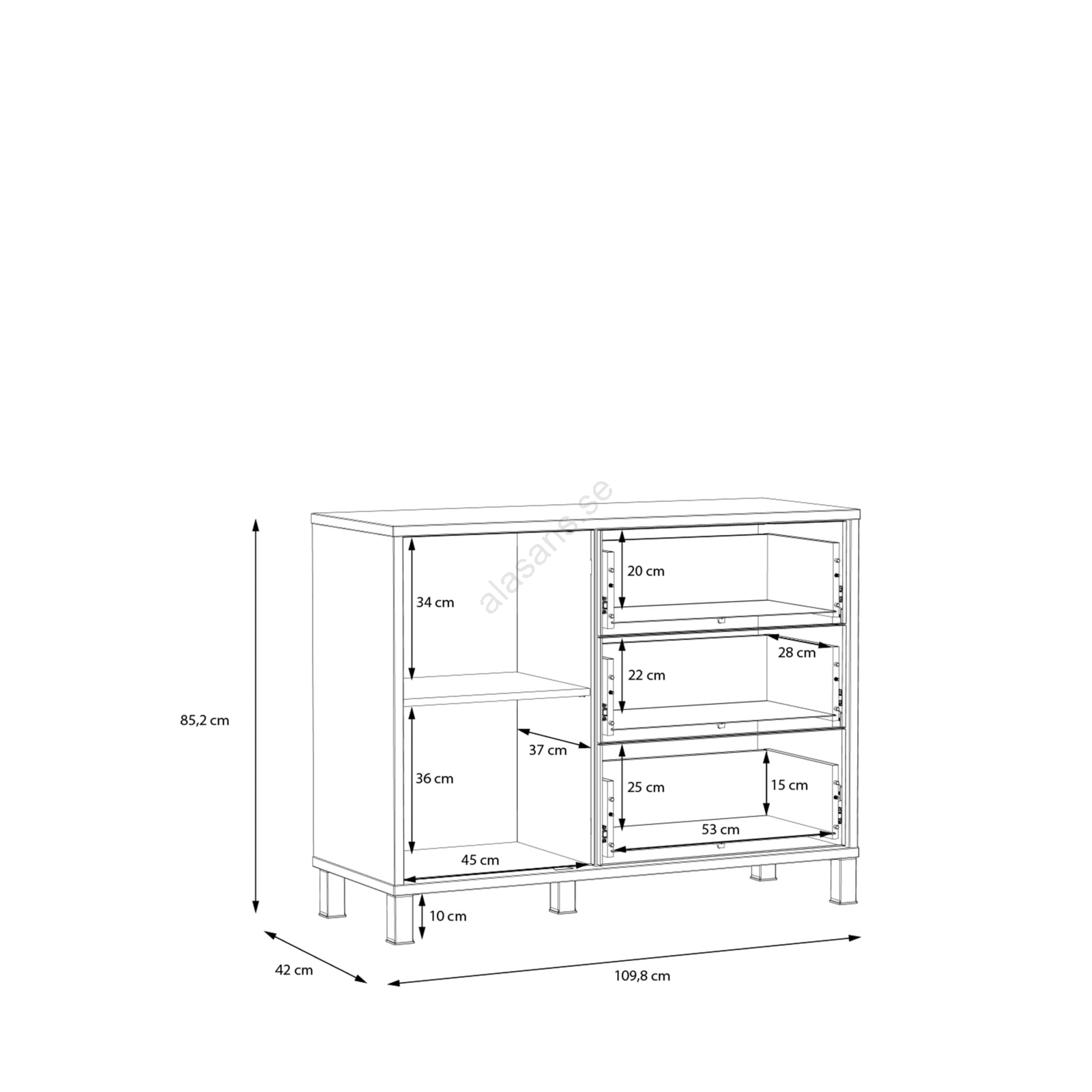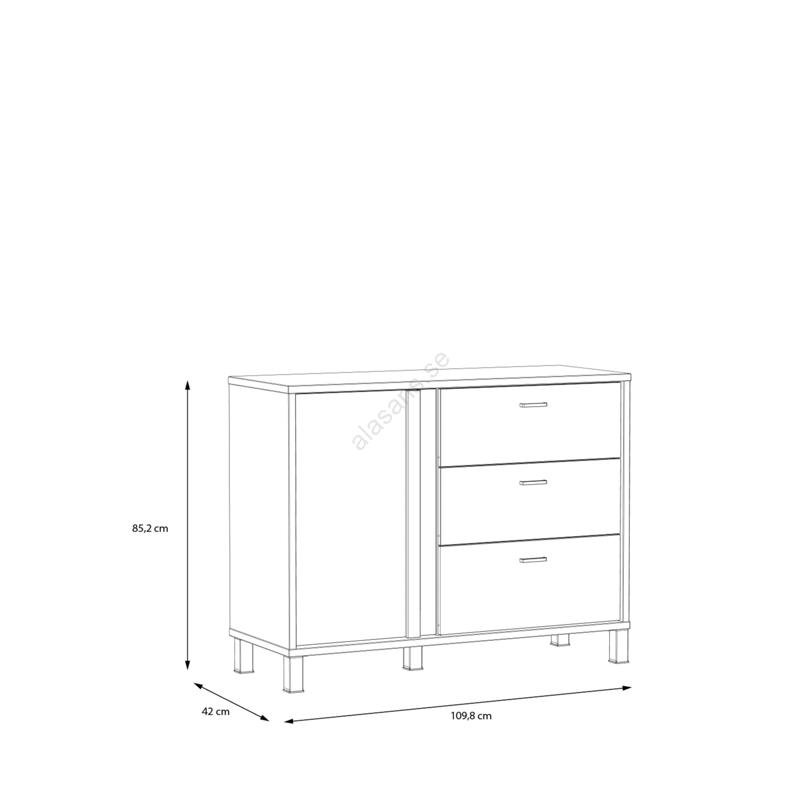 • Med lådor och ett skåp erbjuder den generöst förvaringsutrymme för att organisera dina vardagliga föremål.