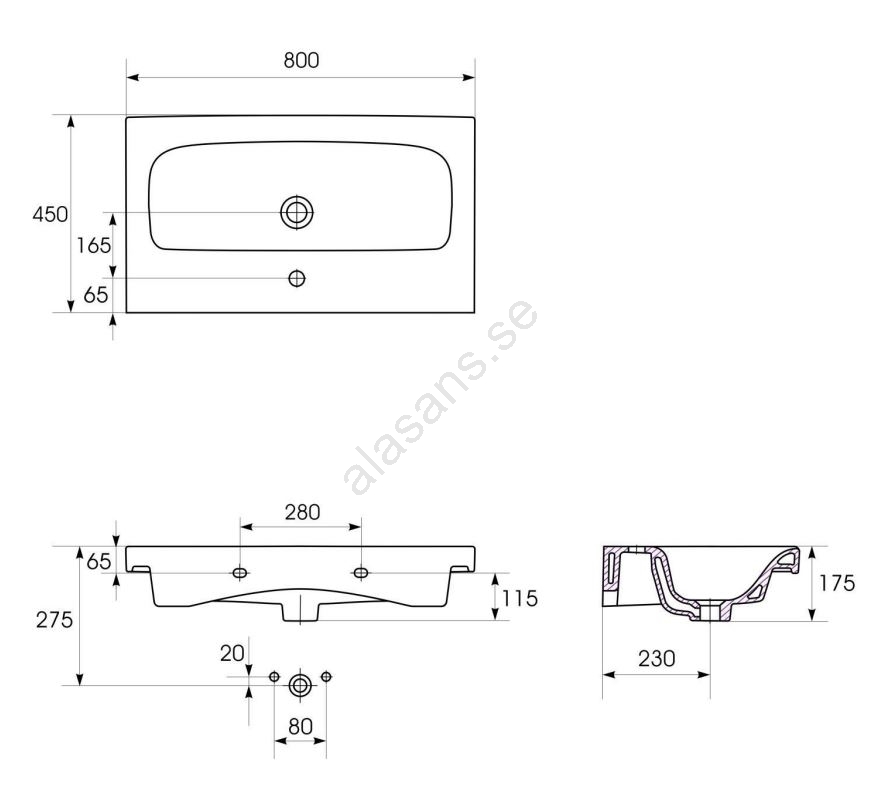 • Slät, helt glaserad yta som underlättar rengöring av handfatet.